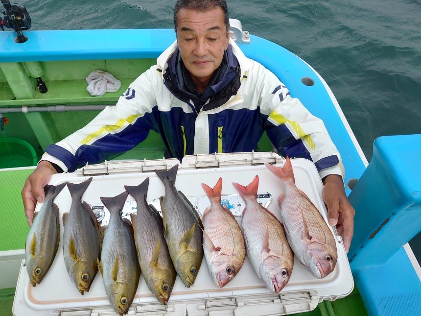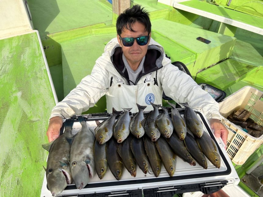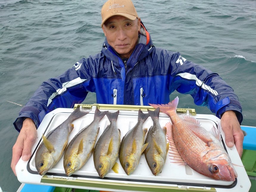 イサキ、ワラサ、マダイ船中7匹、クロダイ、ウマヅラ、ジャンボカワハギが釣れて楽しめました。