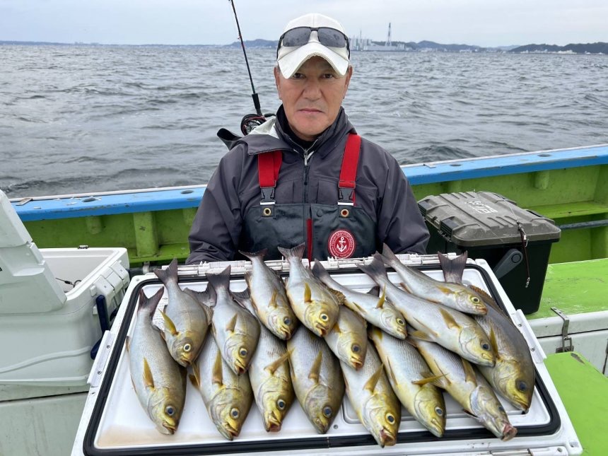 鴨居沖の20m前後を狙い、中型主体に良型も多数混じりました。